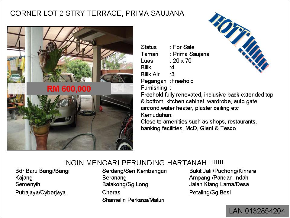 Hartanah Untuk Dijual:Corner Lot 2 Stry Terrace, Prima Saujana